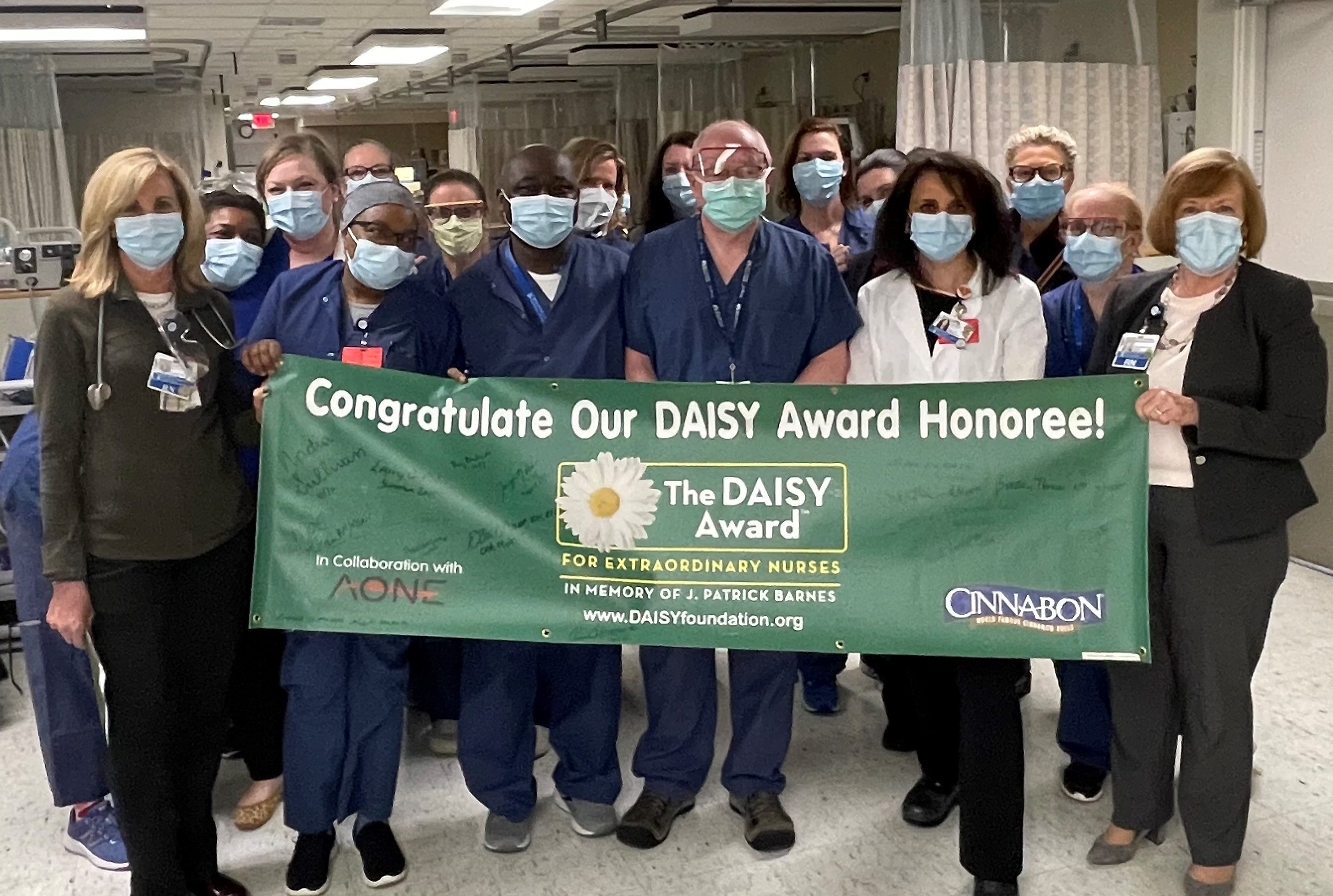 Brigham and Women’s Faulkner Hospital’s Department of Nursing recently honored Post Anesthesia Care Unit (PACU) nurse Chris Malone, BSN, MPA, RN, CPAN, CCRN, with a DAISY Award.