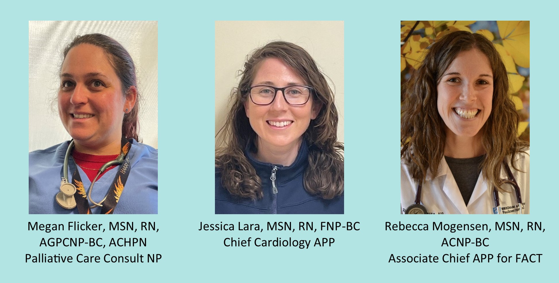 Rebecca Mogensen, MSN, RN, ACNP-BC, also a familiar face at BWFH, has been a member of the FACT service since 2016. She has recently been promoted to Associate Chief APP for FACT. In her new role, Mogensen will lead, supervise and coordinate the daily activities of the APPs in conjunction with the Chief Medicine APP, FACT Medical Director and the Associate Chief of Medicine and administrative leadership. She will also be responsible for collaborating with attending physicians in the medical management of patients assigned to the service and work as part of the integrated team which includes residents, medical students and attendings. “I am most excited to continue to be a part of our growing FACT service, collaborating with my APP and physician colleagues along with hospital leadership as Associate Chief and continuing as a dyad leader on 6 North,” she says. “It is really an exciting time to think about hospital medicine, the FACT service and what it will look like in the upcoming years, especially with the new building! I am looking forward to the challenges and continuing to grow professionally, to meet the demands of our community and hospital.”
