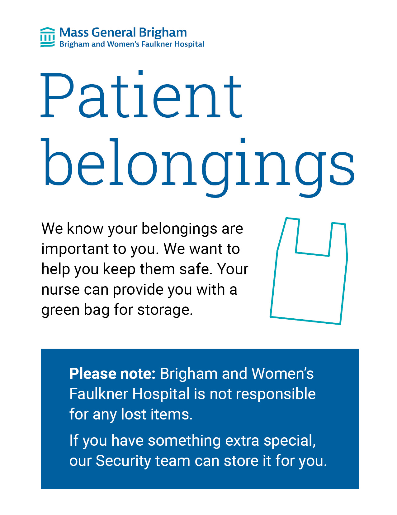 “In our department, we stress the importance of the partnership between patients and our staff to ensure each patient has a good experience within our hospital,” says Aguiar. “As much as it’s our staff’s duty to help patients keep track of their items and offer options for secure storage, it is also the patient’s obligation to take responsibility for their own things. My best advice is for patients to send their most valuable possessions home with a family member.”