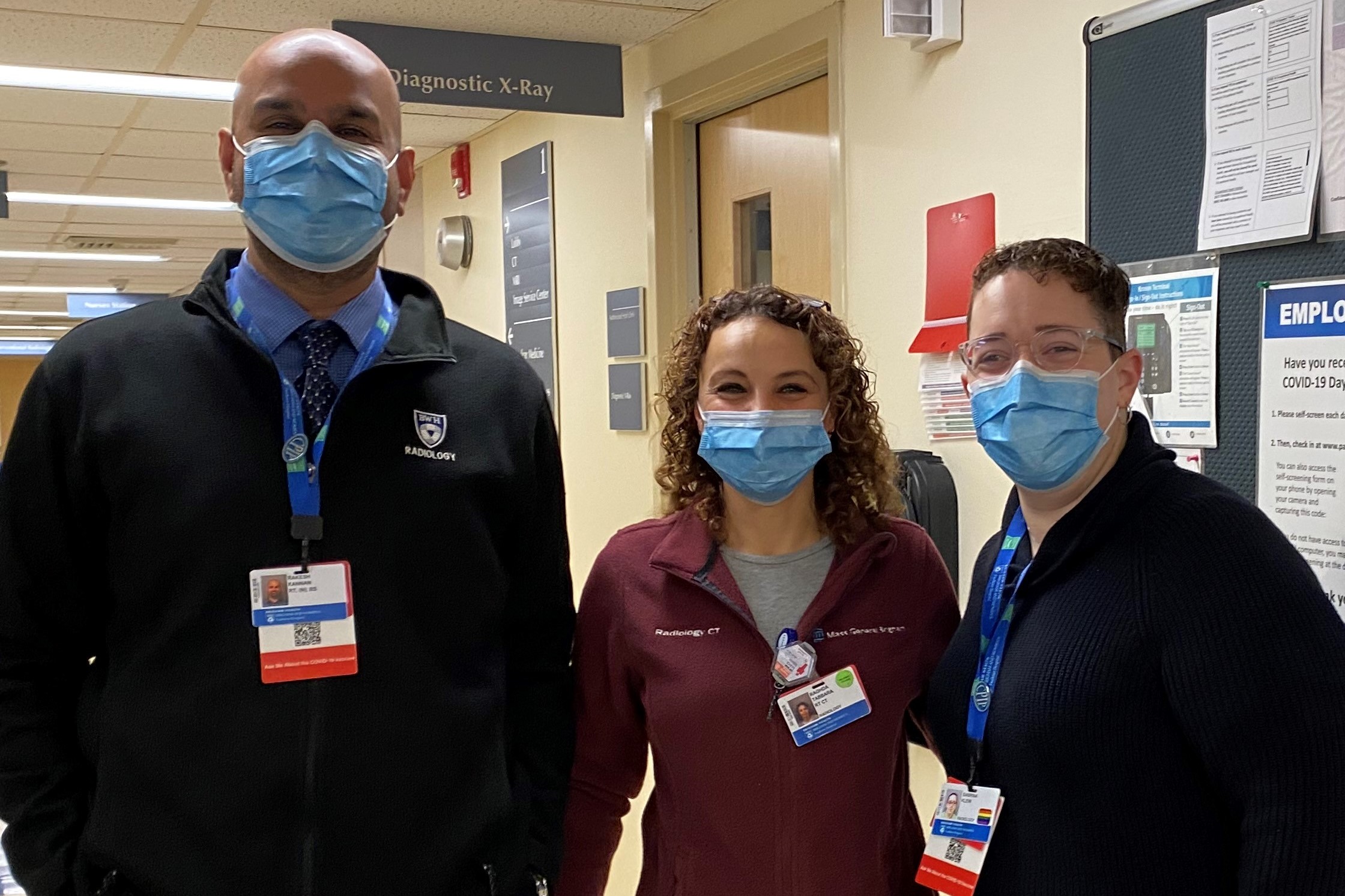 From Left: Rakesh Kannan MSHCA, RT(N) (CT), Radiology Program Manager, Raghda Tabbara MM, BS, RT (R) (CT), CT Supervisor, and Sabrina A. Klein, MA, Radiology Project Manager