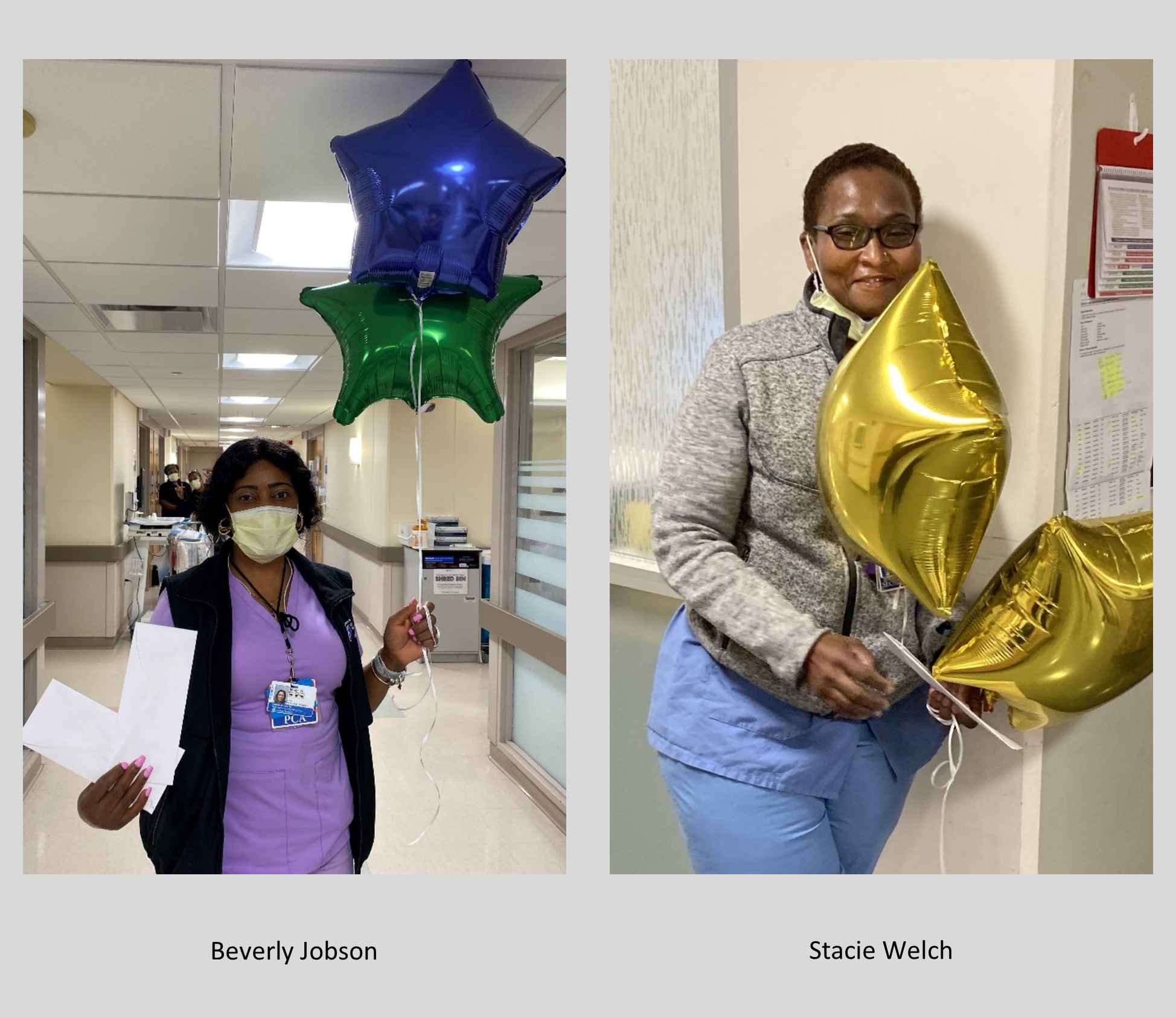 Brigham and Women’s Faulkner Hospital’s I CARE Award recognizes staff members who go above and beyond their regular job responsibilities to make BWFH a great place to work and receive care. Two PCAs—6 South’s Beverly Jobson and 7 South’s Stacie Welch—were both recent recipients of I CARE Awards.