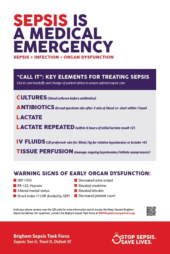 If you are interested in sepsis care and/or have ideas on how to improve sepsis performance in your unit, we welcome you to join the BWFH Sepsis Workgroup! Additionally, if you have any questions about the information shared here or either of the sepsis quality measures, please reach out to Katy O’Loughlin at kcoloughlin@bwh.harvard.edu.