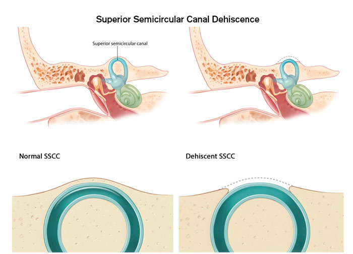 Superior semicircular canal dehiscence (SSCD) or Minor’s Syndrome is a rare medical disorder of the inner ear which can lead to hearing loss and balance issues. The dehiscence, or opening, is caused by a thinning or complete absence of the part of the temporal bone overlying the superior semicircular canal of the vestibular system, which is essential to your sense of balance and spatial orientation. Only recently identified by Lloyd Minor, MD in 1998, this disorder also causes hypersensitivity to sound.